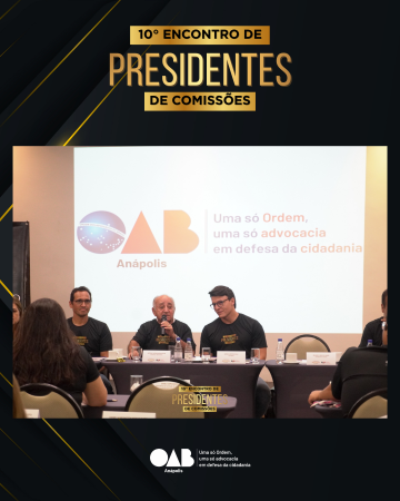 No último sábado (21/02), a OAB Subseção de Anápolis realizou o 10º Encontro de Presidentes de Comissões, reunindo mais de 30 presidentes para um momento de integração, alinhamento institucional e fortalecimento do trabalho desenvolvido em nossa Subseção.
